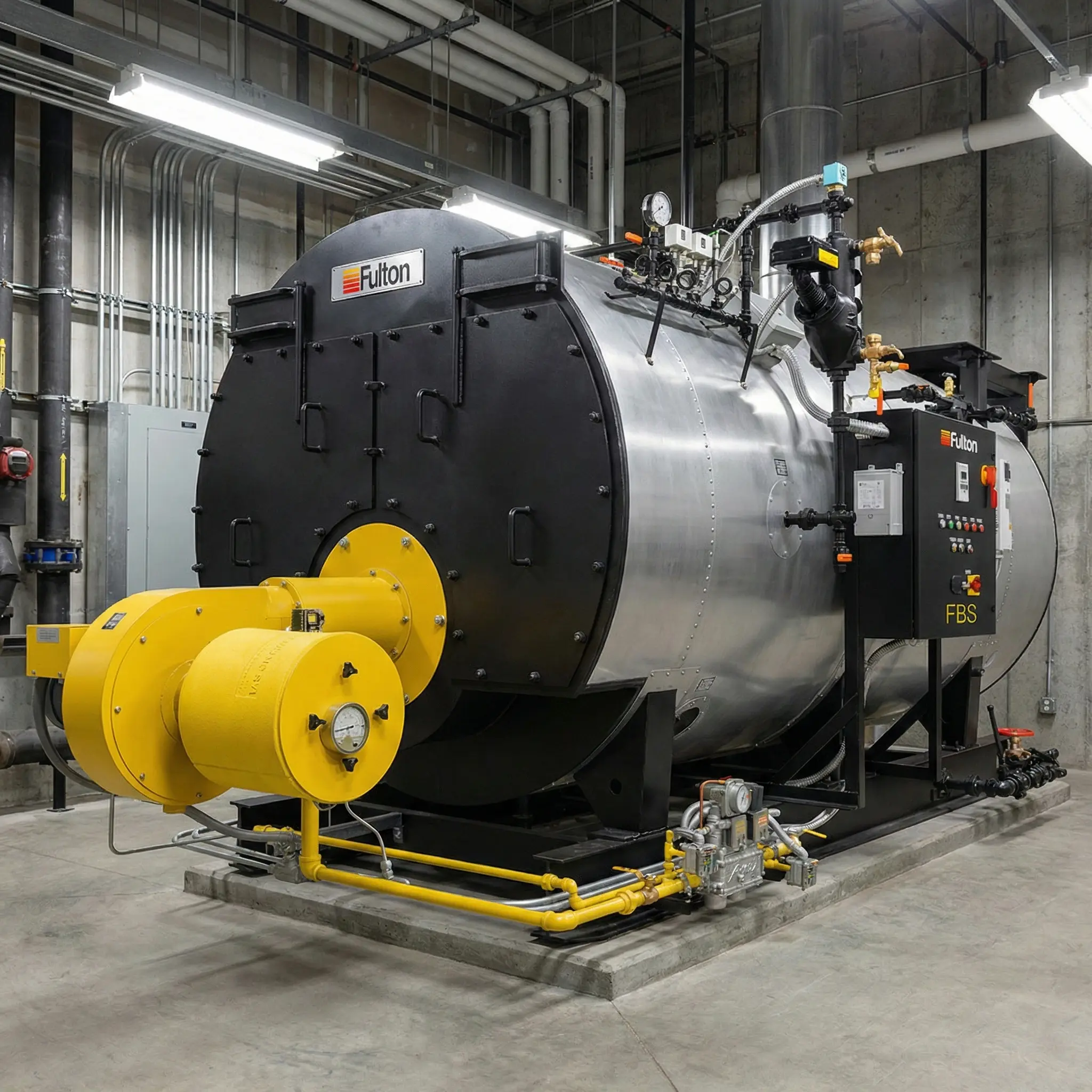 Diseño de carcasa y tubos de humo. Alta capacidad, arranque rápido y distribución de vapor estable para procesos industriales continuos.